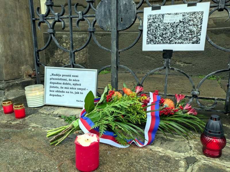 2025-11-21 10:00:00V pondělí v 10 hodin ráno zahájili oslavy výročí 17. listopadu na náměstí Svobody v Žatci zástupci Pirátské strany Martin Kos, Jan Kranda a Vladimír Vlach.