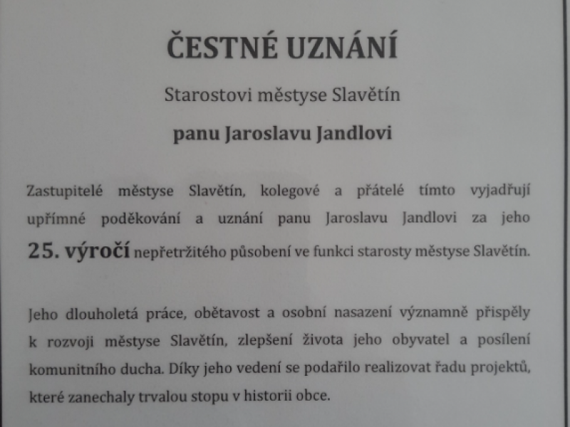 2025-11-28 09:30:00Slavětín - „Minulý pátek jsem z rukou členů Zastupitelstva městyse Slavětína převzal Cestné uznání, které mě hluboce dojalo a kterého si nesmírně vážím,” zněl úvod příspěvku starosty městyse Slavětín Jaroslava Jandla, který v čele obce stojí již…