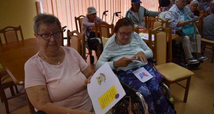 CHOMUTOV (soš) — Datum 1. října značí každoročně Mezinárodní den seniorů. Ti v Městském ústavu sociálních služeb Písečná oslavili svůj svátek o trochu dříve. „V rámci naší podaktivity „Děti malují seniorům k svátku“ jsem před prázdninami v jednotlivých obcích s rozšířenou působností oslovila zřizovatele mateřských a základních škol a dále dětské skupiny na území Ústeckého kraje. Musím říct, že to mělo obrovský ohlas a tady v Chomutově asi úplně největší. Zapojilo se celkem 15 subjektů, kde děti namalovaly přáníčka,“ říká Lenka Tomanová, krajská koordinátorka projektu implementace politiky stárnutí na krajskou úroveň, který realizuje MPSV. Při malé slavnosti předaly výtvory seniorům na Písečné děti ze Základní školy speciální a Mateřské školy Palachova. Cílem projektu je mezigenerační soužití, spolupráce a v současnosti hlavně rozveselení seniorů. Ti měli z návštěvy a dárků opravdovou radost.