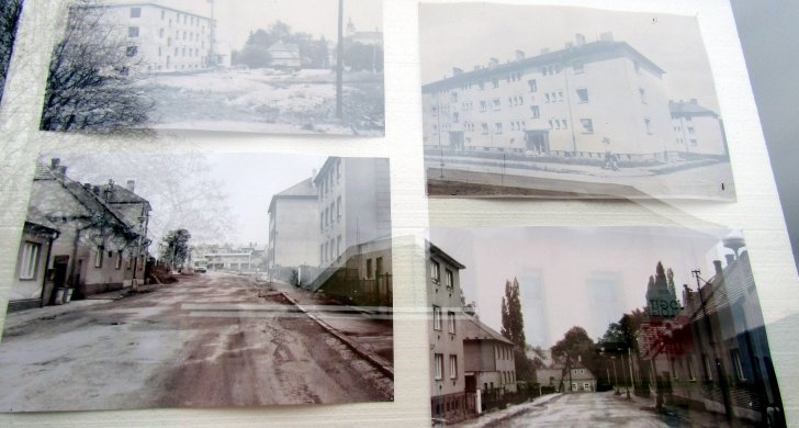 Fotografie ze svých archivů poskytli Romana Havrdová, Dana Křivánková, David Oktábec, Jiří Vaníček a do své sbírky sáhl i další iniciátor fotovýstavy Mirek Švarc. Uvidíte ve výloze dnes už neexistující budovy, snímky dokumentující demolice starých domů, ale i výstavbu nových. Spatříte největší veřejná prostranství, pohledy z ptačí perspektivy i prvomájové průvody. „Máme tu i fotky, které byly nalezeny na skládce. Možná jsme jediní, kdo tyto záběry vlastní,” dodává Edita Langpaulová.