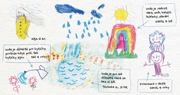 V rámci letošního tématu Světového dne vody jsme se rozhodli oslovit ty, kteří rozhodně nešetří upřímností – děti. Jejich úkolem bylo odpovědět na otázku, jaký má pro ně voda význam, a namalovat obrázek znázorňující vodu. Odpovědi odzbrojují svojí kouzelností, ve které se skrývá čirá esence vody – její životadárnost.