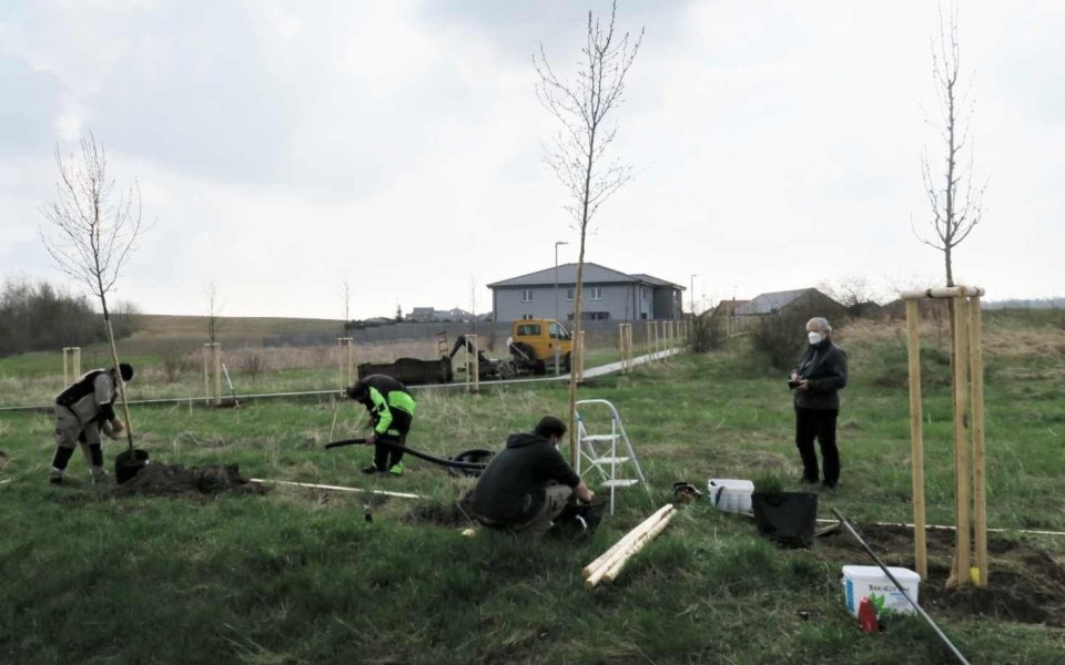 „Jak další upravenou cestou, tak i novou výsadbou jsme vlastně navázali na náš počin z roku 2019, kdy jsme vysázeli třicet nových stromů v areálu bývalých kasáren. Rovným dílem, tedy po deseti kusech, tam nyní rostou okrasné jabloně, třešně a hrušně. Právě ty jsou nyní dosazovány podél chodníku pro pěší k nové rodinné zástavbě na Vinohradech. Několik hrušní bude také oddělovat příjezdovou komunikaci do areálu. Do budoucna bychom zde ještě chtěli na zelené ploše vybudovat dětské hřiště, třeba bude Oranžové,“ říká starosta Jiří Kulhánek, přičemž zřejmě i naznačuje, o jaký grant se bude asi město u Nadace ČEZ ucházet někdy příště.