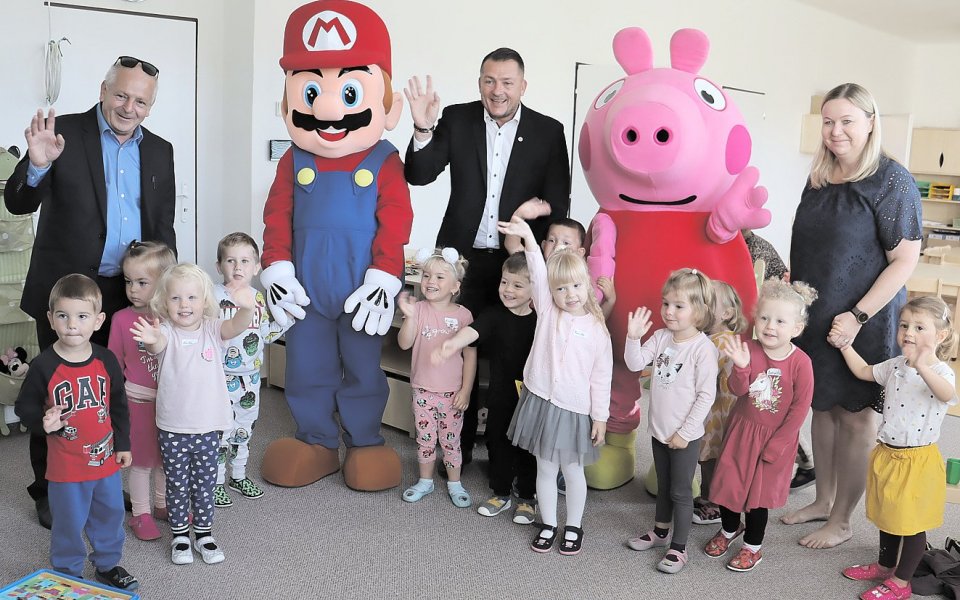 ,,Ve třídě je dvacet pět dětí, dvě paní učitelky a asistentka. Dětem je k dispozici rozlehlá oplocená zahrada, která se v tomto školním roce dočká rekonstrukce, aby zde našly vyžití nejmenší děti,“ řekla ředitelka školky Olga Krátká. Otevření se zúčastnili zástupci lounské radnice starosta Milan Rychtařík, místostarosta Pavel Csonka a vedoucí odboru Školství, kultury a sportu Zuzana Králová. Děti na uvítanou čekala návštěva pohádkových postaviček - Mario a Mummy Pig ze seriálu Prasátko Pepina. Nechybělo přestřižení pásky, slavnostní občerstvení i přípitek. (lus), foto: Lucie Steklá