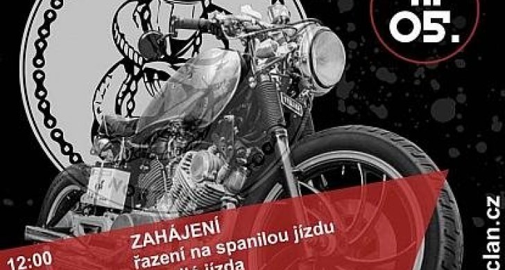 11. 5. (12 h) THE CLAN RIDE. Spring 2024. Spanilá jízda (od 12:30), kapela Za-dřená pípa, soutěže s velice hodnotnými cenami, dobré jídlo a pití, stánek s motošperky.
