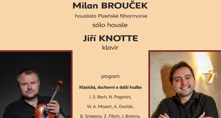 21. 6. (19 h) BENEFIČNÍ KONCERT. Jiří Knotte (klavír) a Milan Brouček (sólo housle) zahrají skladby od Bacha, Mozarta, Smetany, Fibicha a další. Dobrovolné vstupné je určeno na podporu oprav a údržby kostelů.