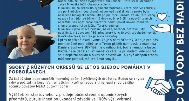 „Vzhledem k tomu, že jako hasiči se snažíme pomoci za jakýchkoli podmínek, tak i tímto směrem nemáme problém udělat dobrý skutek. Věříme, že se sejdeme v hojném počtu, jak z řad hasičů, tak i široké veřejnosti. Protože pomáhat je fajn! Pojďte s námi pro Miloška z Kryr udělat krok, který pro něj může hodně znamenat v léčbě,” zve za organizátory František Houdek, starosta SDH Podbořany.