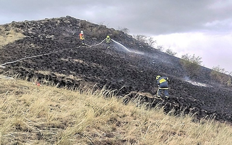 Raná, Louny - Požár, který v sobotu 23. srpna zachvátil Ranou, zaměstnal hasiče a zasáhl i místní přírodu. Plameny se rychle šířily směrem k vrcholu, a proto museli hasiči s cisternou vyjet až do sedla kopce a odtud pokračovat s hadicemi výš.