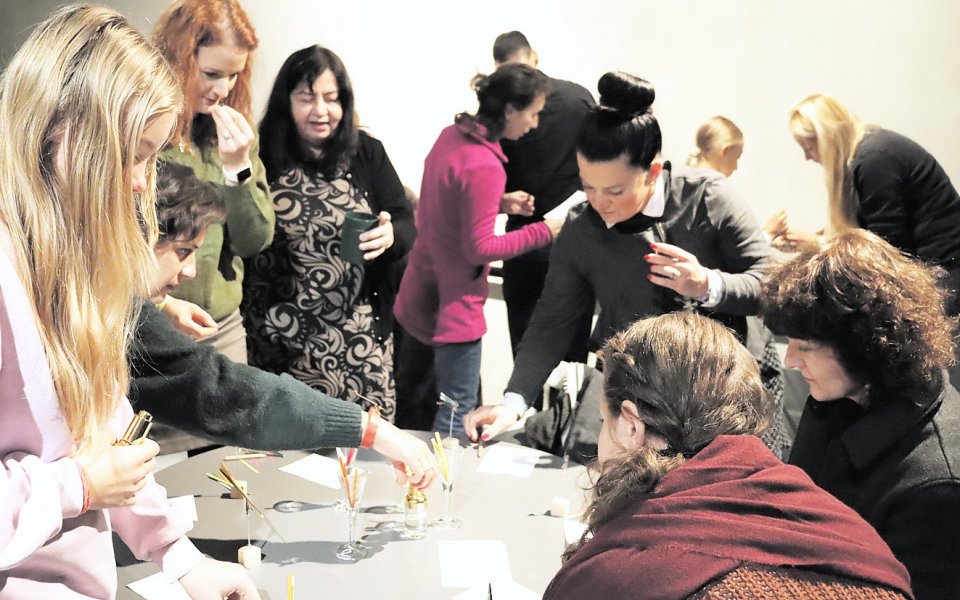 Během workshopu se účastníci seznámili s účinky esenciálních olejů z hlediska aromapsychologie a prakticky se naučili, jak si připravit individuální ,,libovůni“ i jak zapojit inhalaci do každodenního života a proč. Účastníci si mohli přivonět k bezmála dvaceti vzorkům vůní, vybrat ty, co jim voní nejvíce, tak, aby pro ně vůně byla harmonická, aby jim voněla. Na výběr měli vůně mandarinky zelené, citronu, meduňky, ylang ylang, růžového dřeva, kadidla, pomeranče, jasmínu či růže, lípy, santalového dřeva či ambrovníku. Z připravených vzorků si poté podle vybraných vůní namíchali vzorek svého parfému. ,,Neděláme parfém, ale elixír pro duši,“ upozornila K. Melenová. (lus)