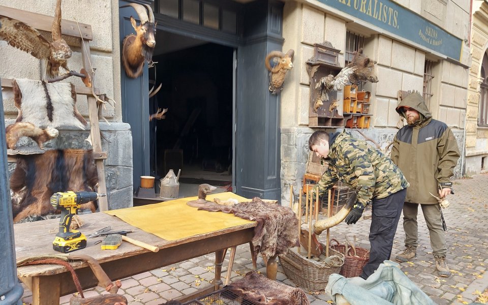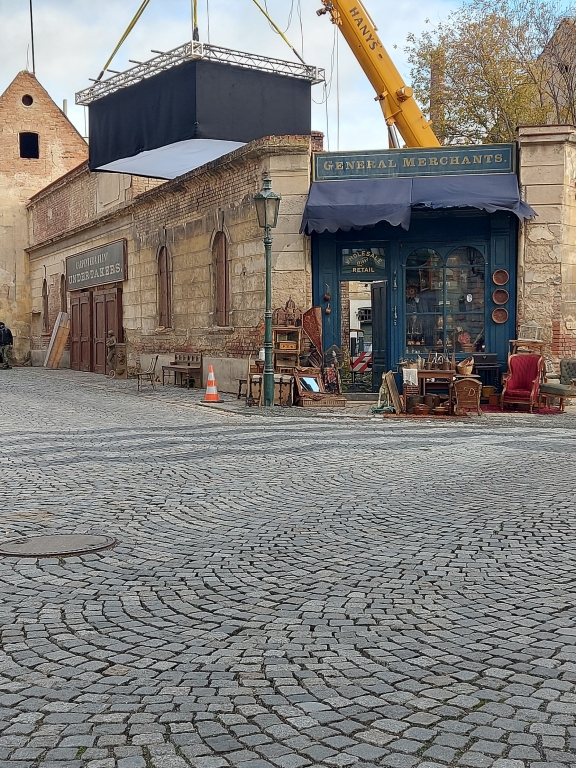 Dekoratéři vytvořili například kulisový obchod u budovy bývalé sušárny a skladu chmele Vinzenze Zulegera na Smetanově náměstí. Objevily se tu dobové vývěsní štíty, oprýskané dveře, anglické cedule a rekvizity připomínající Ameriku před více než 150 lety.