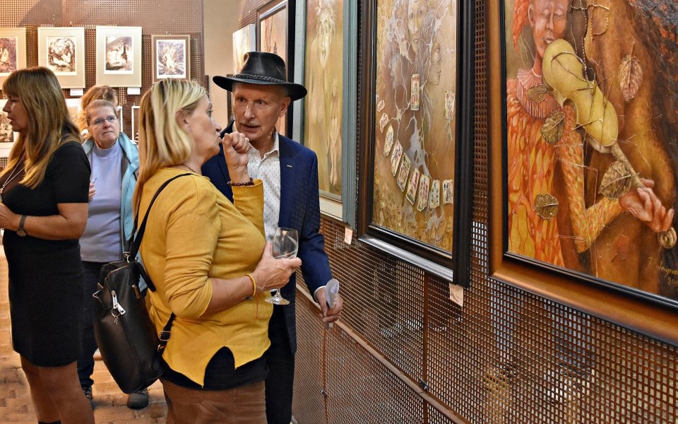 Renesanční sladovna v Žatci opět ožila. Vernisáž výstavy Jana Wagnera (na fotografii v klobouku) ,,Pozvánka do mých snů“, která se uskutečnila v úterý 4. listopadu, přilákala téměř dvě stovky návštěvníků a zapsala se tak mezi nejnavštěvovanější akce v prostorách sladovny.