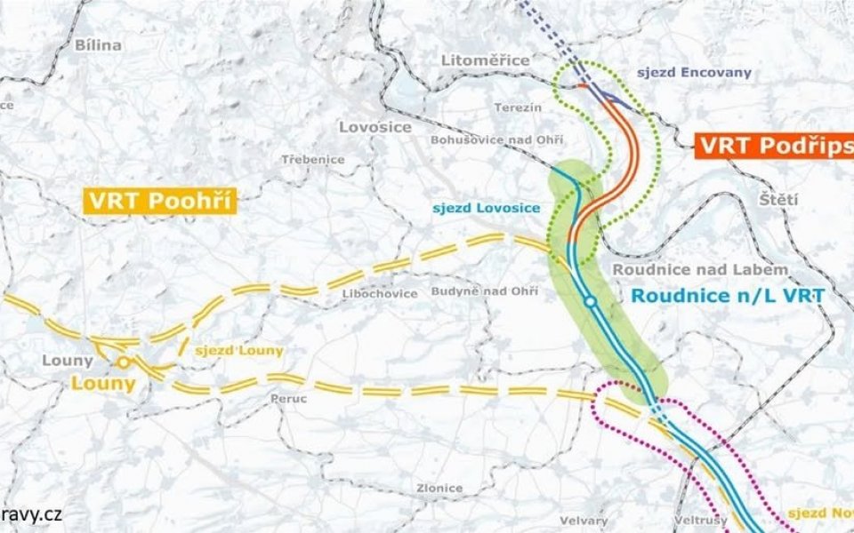 VRT se dotkne také okresu Louny. Jak vyplývá z plánovaného rozvoje sítě VRT, vznikne zde odbočka z hlavního koridoru Praha – Ústí nad Labem – Drážďany. Odbočka do Loun a Mostu z hlavního VRT koridoru (RS 4) se plánuje vybudování samostatné větve (označované jako VRT Poohří nebo RS 42), která zajistí rychlé spojení do regionálních center Louny a Most. ,,Odbočka zajistí výrazné zkrácení cestovní doby. Cílem tohoto projektu je zkrátit cestu z Loun do Prahy na přibližně čtyřicet minut, čímž se výrazně zlepší dopravní dostupnost regionu,“ říká studie. Správa železnic již před-stavila projekt zástupcům města Louny a s městem aktivně spolupracuje na přípravě a projednávání trasy. Studie se zabývají také modernizací a napojením stávajících regionálních tratí v okolí, například koridoru Louny–Žatec, na novou VRT. Tato větev by měla sloužit primárně pro osobní dopravu, ale zvažuje se i možnost smíšeného provozu (osobní a nákladní vlaky). Projekt je stále ve fázi studií a územního plánování, přičemž se hodnotí různé varianty vedení trati a umístění odbočky. (lus, krú)