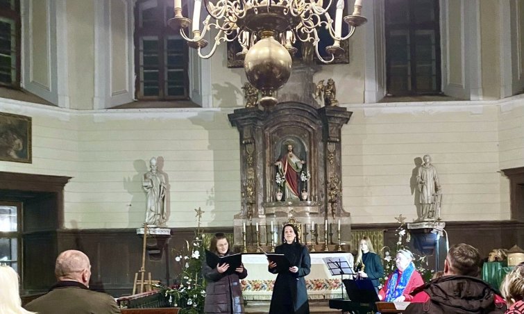 Program doplnila vánoční píseň a po celý podvečer byl návštěvníkům k dispozici také malý vánoční jarmark.