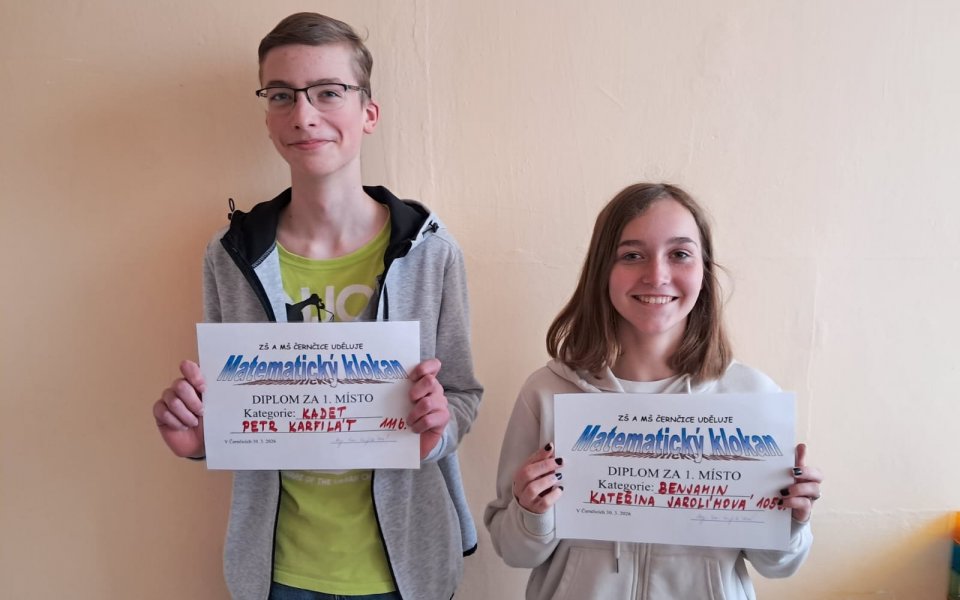 ,,Je mi velkou ctí, že se můžeme pochlubit úspěchy našich žáků,“ uvedla za vedení školy Klára Mašanská. V okresním kole soutěže Matematický klokan 2026 v kategorii Kadet 8. až 9. ročník se na prvním místě umístil Petr Karfilát (8.B). V kategorii Benjamín 6. až 7. ročník se na druhé příčce umístila Kateřina Jarolímová (7.třída). V kategorii Klokánek 4. až 5. třídy se na 7.místě umístila Laura Hronková (5.A). ,,Všem žákům náleží velká gratulace a přání, aby je stále matematika bavila a dosahovali v této oblasti dalších úspěchů. Poděkování patří i paním učitelkám, Monice Křížkové, Evě Karfilátové, které jim poskytovaly v matematickém putování základními ročníky matematický nadhled a matematické úkony, které v životě upotřebí,“ dodala K. Mašanská. foto: archiv školy