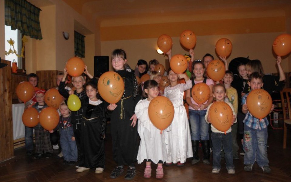 Staňkovice – Ke strašidelnému reji se v pátek 28. října sešly na sále Restaurace Bílý Lev ve Staňkovicích místní děti. Čekala na ně spousta soutěží o ceny a her. Při jedné z nich jim rodiče nafoukli oranžové balonky a děti měly za úkol nakreslit na ně obličej, jako by to byla vyřezávaná dýně. Na památku si potom s nimi pořídily fotku – níže. V rámci projektu Celé Česko čte dětem proběhla Básničková tombola, kdy rodiče na lístku z tomboly měli úryvek básně, který měli za úkol přečíst. Volilo se také nejhezčí podzimní strašidlo, jejichž výstavka byla od poloviny října pod břízou ve dvoře před obecním úřadem. K tanci a strašidelnému rejdění dětem zahrál DJ Tony.