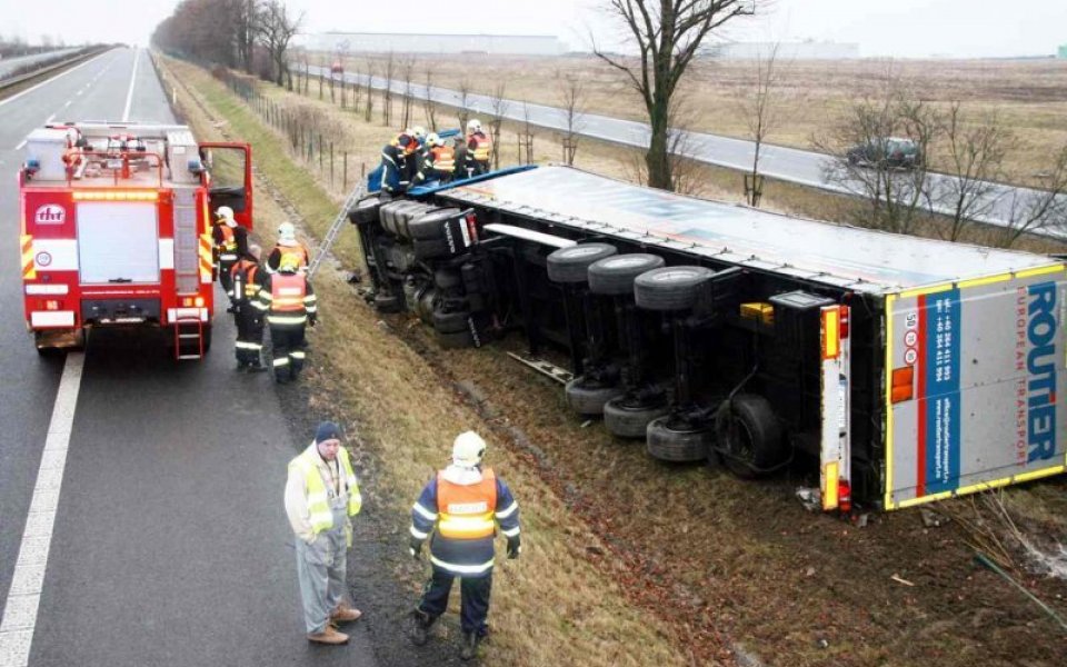 Při dopravní nehodě dvou osobních automobilů Renault Laguna a Rover a nákladního vozu DAF sjel kamion ze silnice a zaklínil se ze srázu u mostu nad kolejištěm. Jeho zraněný řidič se zrovna soukal ven, když na místo dorazila přivolaná jednotka žateckých profesionálních hasičů. Jako první hasiči asistovali záchranné službě s ošetření účastníků nehody, lehce zraněni byli i oba řidiči automobilů. Řidička byla převezena do Nemocnice v Žatci k dalšímu ošetření, druhý řidič zůstal na místě nehody.