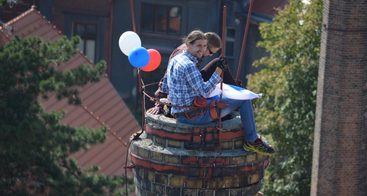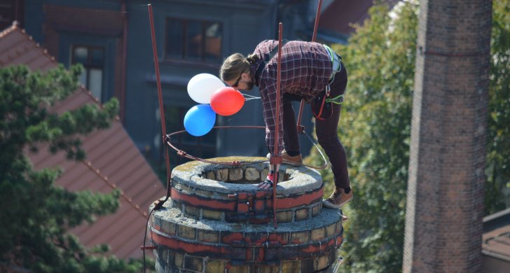 V Den české státnosti 28. října opět vystoupali do výšin komínů komínáři z českého svazu. Originální akci s názvem ,,Hurá na komíny!“ opět zorganizoval Chrám chmele a piva s Galerii Sladovna, kdy v odpoledních hodinách na osm žateckých komínů, Chmelový maják a věž radnice vynesli komínáři vlajky a balónky v národních barvách. Vše odstartovali lidé na Chmelovém majáku, odkud se do nebe vypouštěly desítky balónků. Krásnou podívanou mohli všichni obyvatelé sledovat z ulic města nebo také z věže radnice, na kterou byl díky mimořádné události vstup zdarma. Pivovar Chrám chmele a piva po celý prodloužený víkend zval všechny milovníky zlatého moku na speciálně uvařené pivo na 100. výročí vzniku Československa, v rámci současně probíhající akce ,,Dny českého piva“. Ve 14:30 byla pro všechny zájemce připravena také komentované prohlídka žateckých památek.
