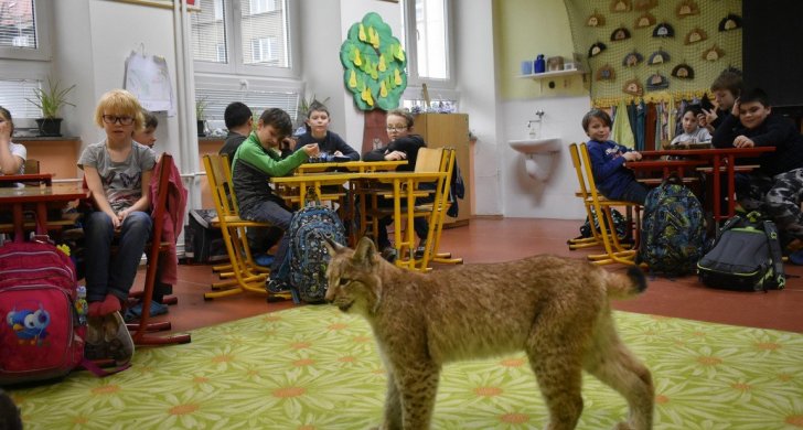REGION (soš) — Do jedné ze tříd chomutovské školy Na Příkopech vchází Jiří Sochor s velkou přepravkou. Jakmile děti zjistí, že se v ní ukrývá rys, užasnou. Stejná fascinace z dětství dovedla majitele půlročního rysa k jeho pořízení. A zatímco Rýša chodí po třídě, občas vykoukne z okna, pohraje si s oblíbeným plyšákem, nebo očichá aktovky a penály, Jiří Sochor neúnavně vypráví o rysech, vyvrací mýty a polopravdy a snaží se seznámit širokou veřejnost o problematice velkých šelem na našem území.
