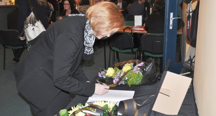 Rodina se rozhodla pro rozloučení v úzkém rodinném kruhu. Ovšem Vladimír Drápal přišel s myšlenkou na neformální rozloučení s touto význačnou osobou ve Vrchlického divadle. Myšlenku podpořili exstarostové Jan Kerner, Radovan Šabata a současný starosta Pavel Janda. Rozloučení se uskutečnilo večer v neděli 13. ledna.