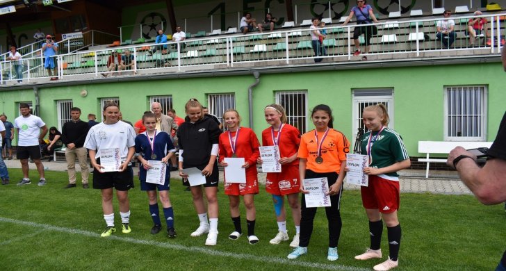 SPOŘICE (soš) — Ve čtvrtek a pátek se do Spořic sjelo šest nejlepších škol z celé ČR na republikové finále Sportovní ligy základních škol v minifotbalu. Žáci osmých a devátých tříd předvedli vyrovnaná utkání jak v chlapecké, tak dívčí kategorii. Mezi dívkami si nejlépe vedlo družstvo ZŠ Pardubice — Ohrazenice, druhé místo obsadila ZŠ Sever z Hradce Králové, třetí se umístila děvčata z ostravské ZŠ Klegova. V chlapecké kategorii si zlato domů odvezla ZŠ Sever Hradec Králové, druhá skončila ZŠ Sportovní z Uherského Hradiště. Bronz putoval do teplické ZŠ Edisonova. Chomutovská základní škola Písečná (úplně vlevo) skončila šestá.