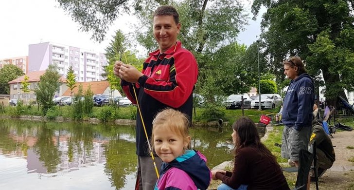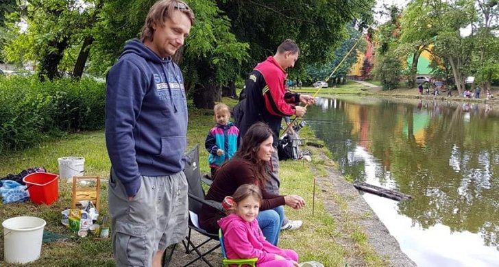 Rybářské závody, které probíhají systémem chyť a pusť, jsou zároveň uctěním památky zemřelého kamaráda Tomáše „Izzyho“ Posnera, který je v minulosti spolupořádal a byl „motorem” obnovy bývalé požární nádrže v centru města a jejího zarybnění. Sobotní počasí je vyhovující, není horko a nepálí slunce. Na závodech nechybí legrace a dobrá nálada, ostatně je to vidět i z fotopříspěvků hlavního organizátora ;-) .
