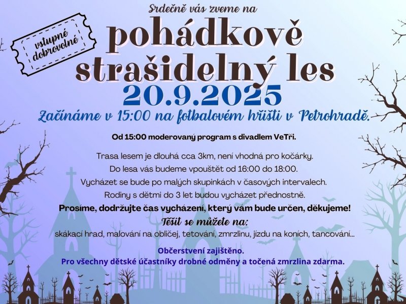 2025-09-18 09:51:00 3 fotografieObec Petrohrad zve na dvě podzimní akce, které potěší rodiny s dětmi i milovníky turistiky. Navíc se obec dostala i do televizního vysílání.