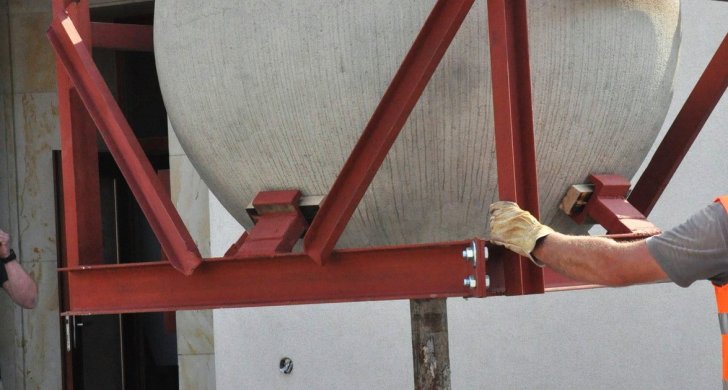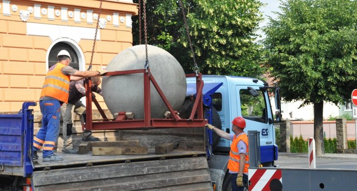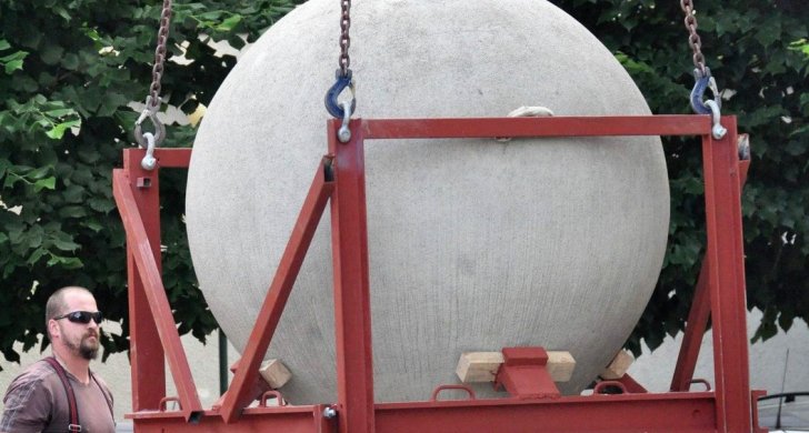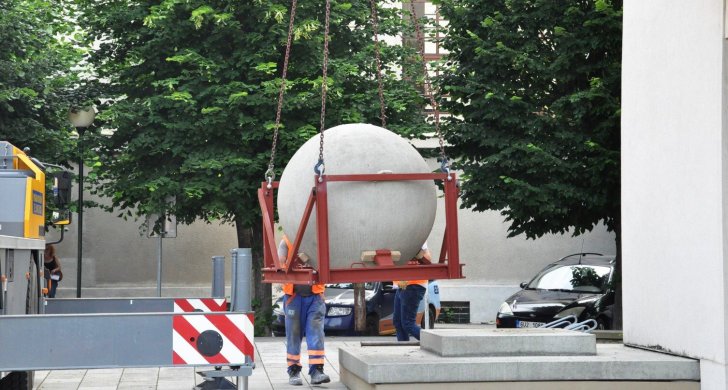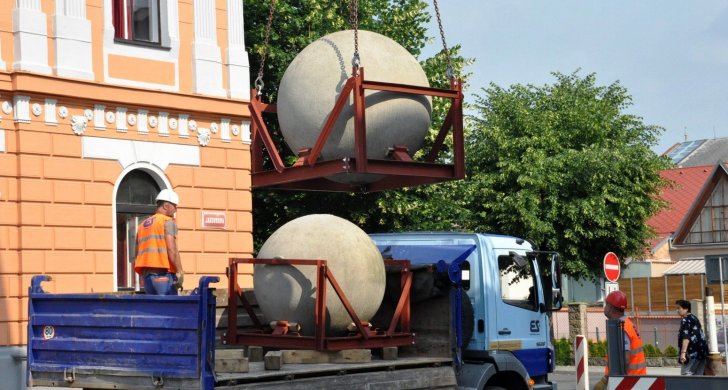 Dominanta Vrchlického divadla v Lounech, dvě betonové koule, jsou minulostí. V pátek 1. června o ně divadlo přišlo. Jejich odvozem začala příprava na vybudování piazzetty s předlohou protipožární divadlení opony podle návrhu Zdeňka Sýkory před divadlem. Obě koule, které u divadla stály od roku 2002, odkoupila lounská společnost Ekostavby za 150 tisíc korun. Firma ve své žádosti o odkup uvedla, že účelem nabídky je forma finanční podpory projektu. Ekostavby betonové koule znovu umístí do veřejného prostoru, a to na Zelené náměstí.