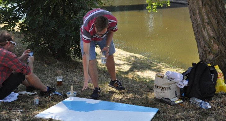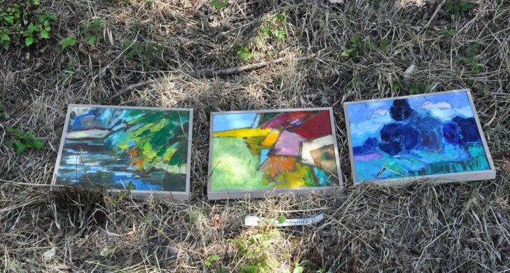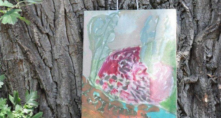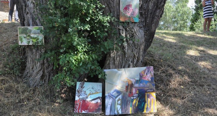 Historická opona akad. malíře Oskara Brázdy spuštěná před začátkem koncertu